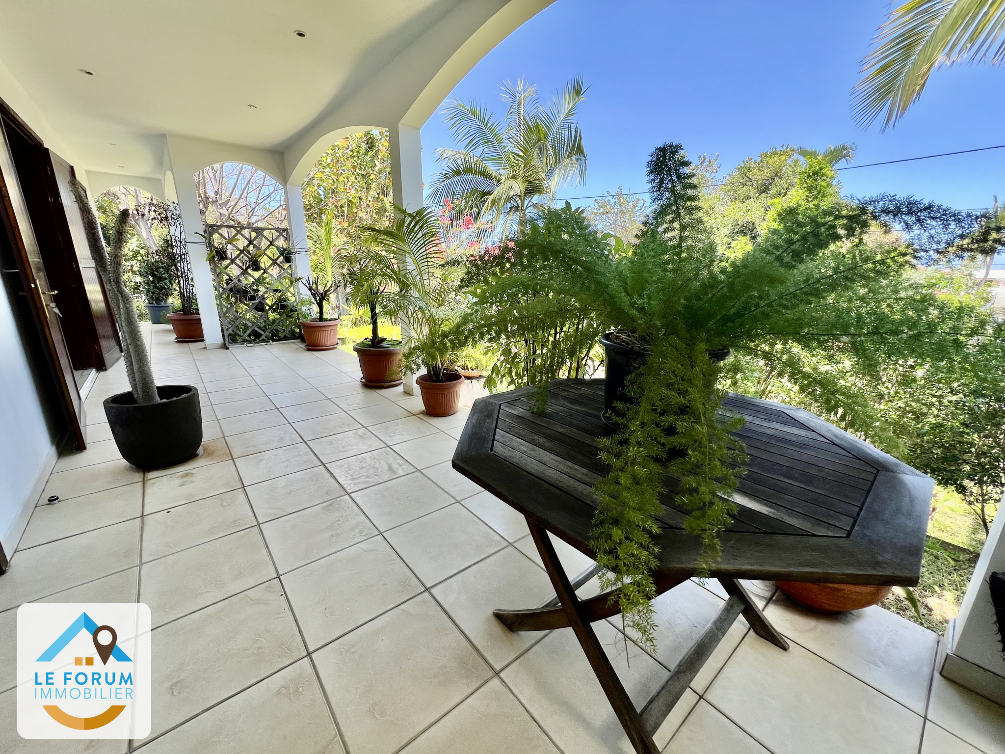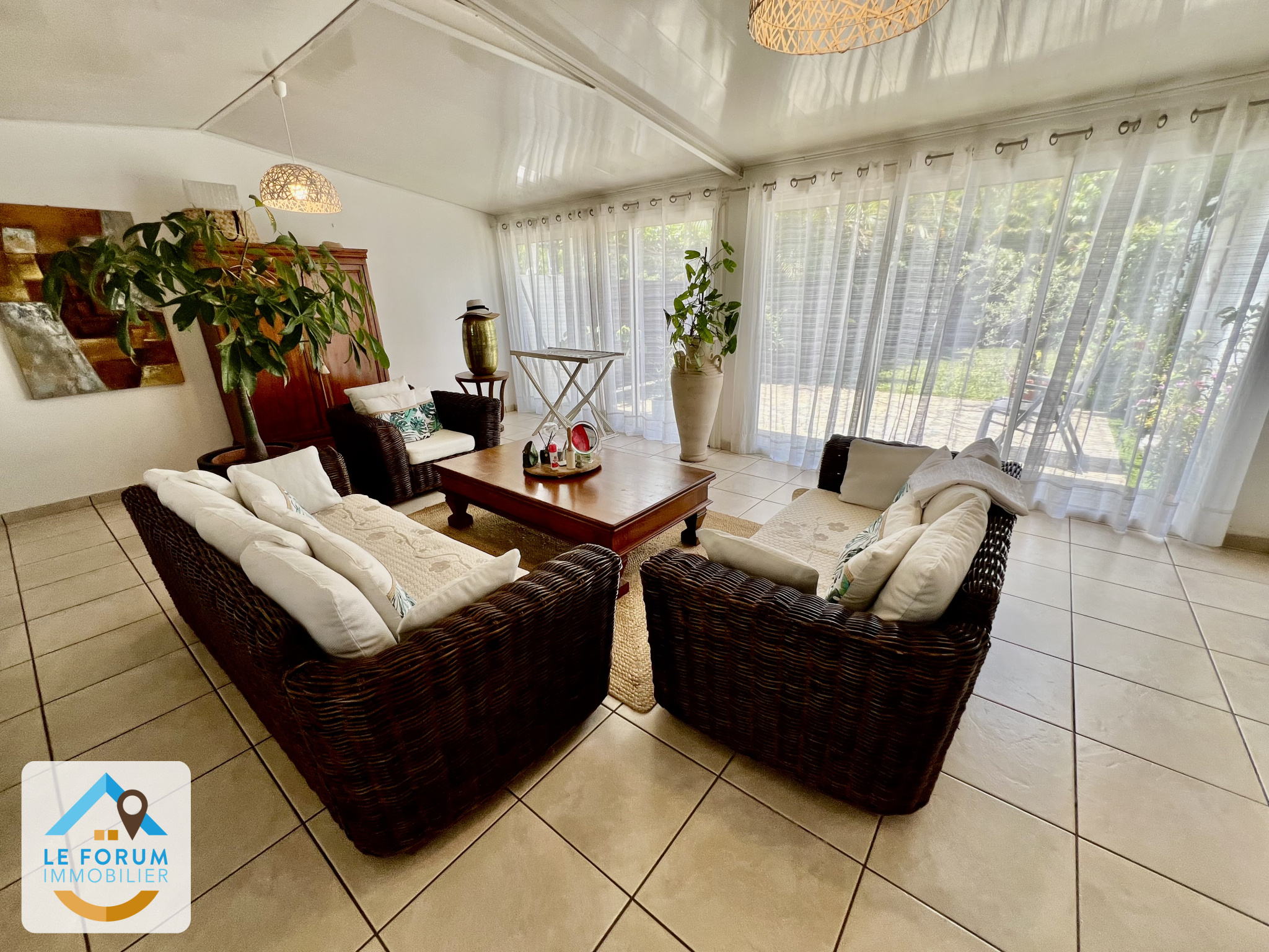 SAINT PIERRE 97410 - N'ATTENDEZ PLUS... Venez visiter cette chaleureuse villa F3/4 climatisée, d'une surface habitable d'environ 186 m2 édifiée sur une parcelle arborée et parfaitement entretenue d'environ 740 m2, dans un environnement paisible et résidentiel. La villa en bon état général bénéficie de beaux volumes et de belles hauteurs sous plafonds. Vous serez accueillis côté jour par un chaleureux séjour d'environ 38 m2 donnant accès à la cuisine aménagée - équipée ouverte sur la varangue fermée d'environ 35 m2. Le coin nuit offre 2 chambres spacieuses dont une suite parentale, 1 mezzanine et 1 salle d'eau lumineuse. Garage de 38 m2 attenant à la maison. La tranquillité, l'environnement et l'état irréprochable de la villa ne vous laisseront pas indifférent.